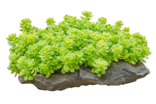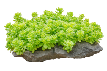 Vibrant green succulent plants on grey rock transparent background png nature images white environment close-up view