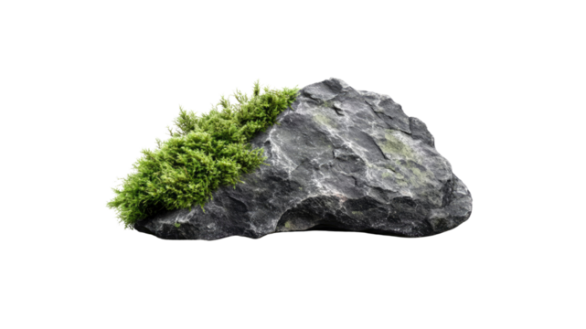 Isolated Grey Rock with Green Moss - Nature Texture and Background