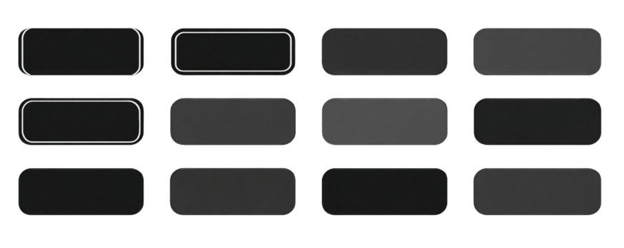 Set of twelve square ceramic tiles in various shades of grey and white, arranged in a 3x4 grid isolated on transparent background