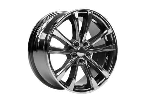 Car accessories transport vehicles transportation. Wheel Alloy car wheels rim black, grey chrome or mag wheel high performance auto part decoration isolated on transparent cut out PNG background.