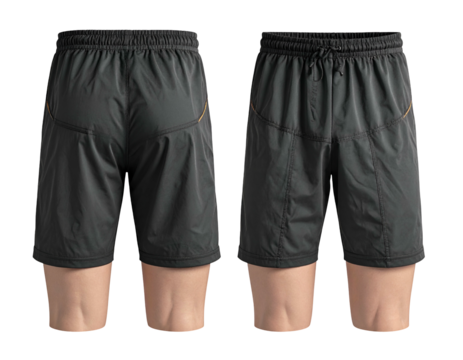 Two views of dark grey athletic shorts on mannequins