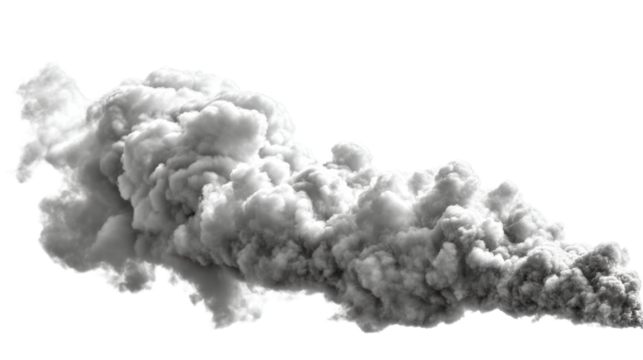 Thick grey smoke billows across a white background, cut out transparent