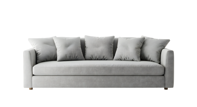 Modern grey sofa with plush cushions designed for contemporary living spaces or lounge areas