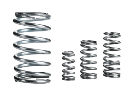 A close-up studio shot showcasing a metallic spring coil with a reflective, shiny surface