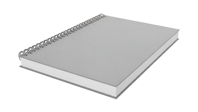 Blank spiral bound notebook with gray cover isolated on transparent background