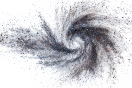 Swirling vortex of grey smoke or fog, isolated on transparent background