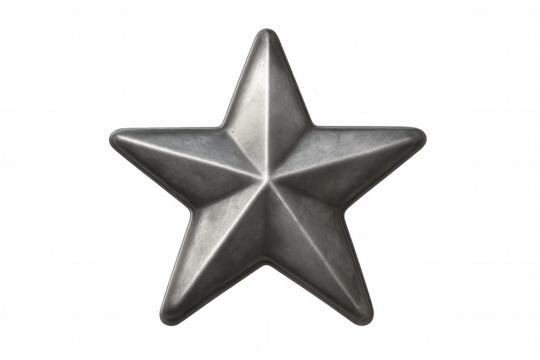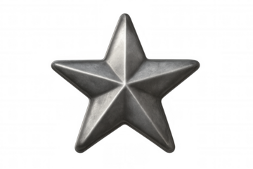 Metallic star showing achievement, ranking, success, and review. Isolated object on transparent background