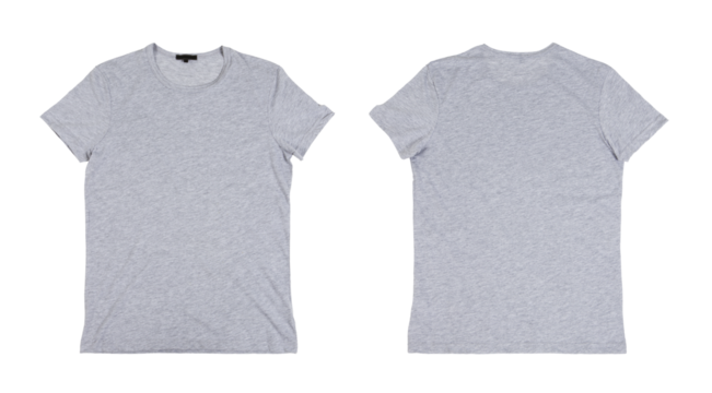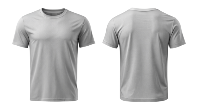 Front and back view of a grey t shirt isolated on transparent background