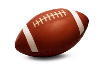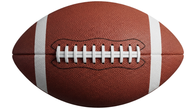 American football PNG isolated on transparent background, brown leather ball with white stripes for sports design and game day graphics