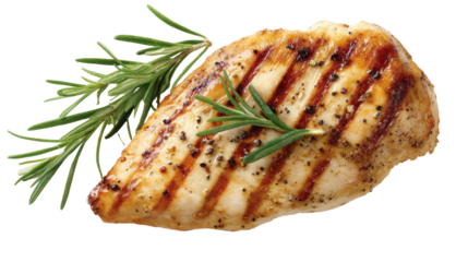 Grilled chicken breast with rosemary pepper and grill marks on transparent background