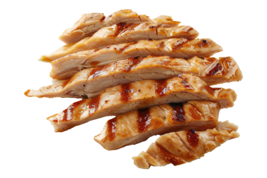Grilled chicken thighs isolated on transparent background.