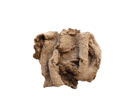 Used fuzzy tennis ball with yellow felt texture showing wear and grime on transparent background for sports concepts