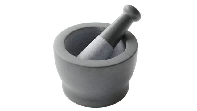 White mortar and pestle at a slight angle, isolated against a dark, featureless backdrop