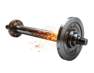 Metal bar with circular weights, sparks erupting
