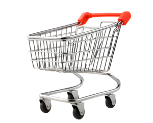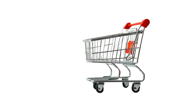 Supermarket shopping cart on a white background ideal for showcasing grocery shopping, retail, and consumer activities in various contexts
