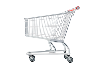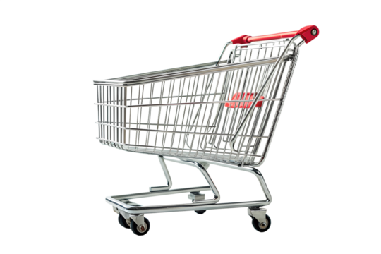 Red Handled Shopping Cart on White Background. On a White or Clear Surface PNG Transparent Background.