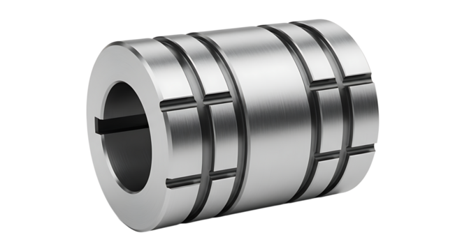 A Gleaming Mechanical Component: A Precisely Crafted Metal Cylinder With a Series of Grooves on a Clear PNG or White Background.
