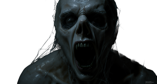 Horrifying Creature, 3D Render, Spooky Monster, Halloween Image, Digital Art, Nightmare Fuel, Creepy Face, Fearsome, Terrifying, Dark Fantasy, Gothic Horror,