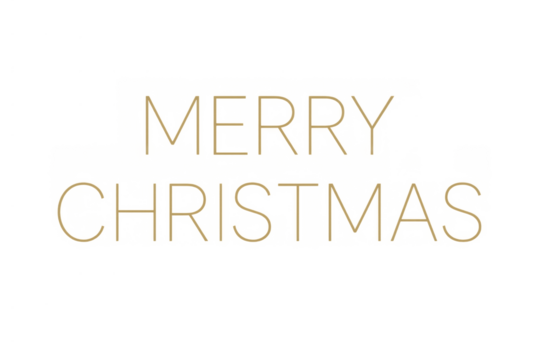 Merry christmas holiday greeting text in a modern gold sans-serif font, celebrating festive seasons with transparent background