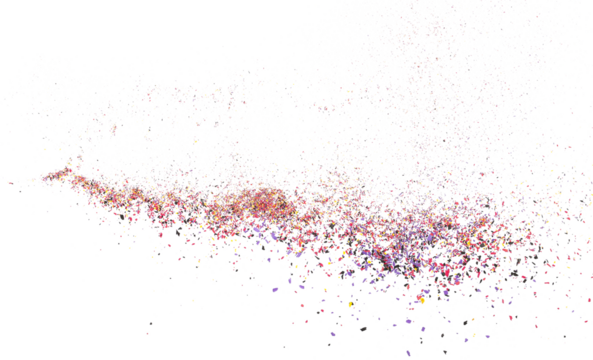 Colorful chalk pieces and powder flying, isolated on white, clipping path