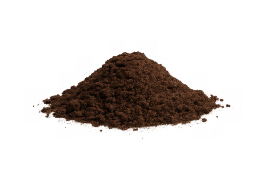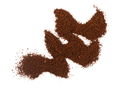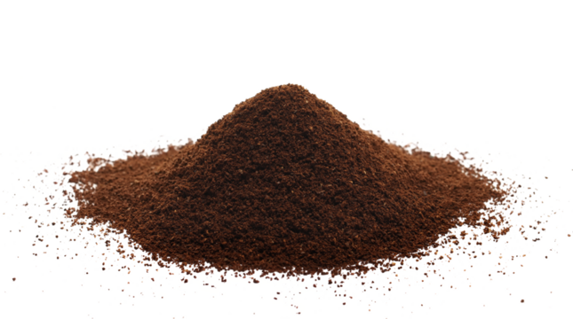 Small mound of ground coffee resting on a transparent background, perfect for enhancing coffee-themed projects and designs