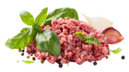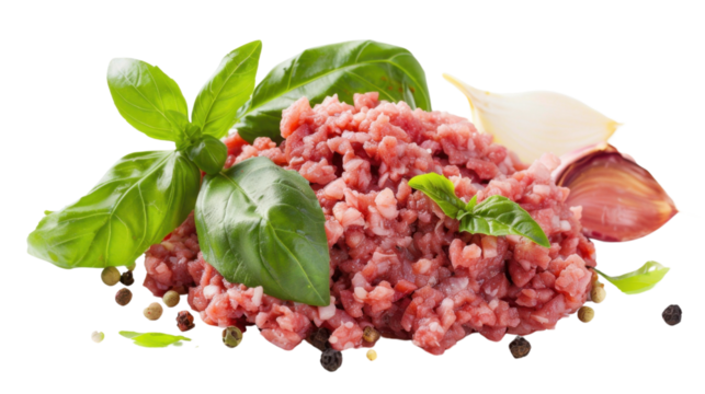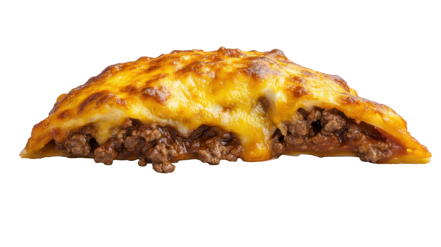 Delicious baked savory pie with ground meat, cheese, and roasted cherry tomatoes; perfect dinner option, on a transparent background, PNG image, PNG file.