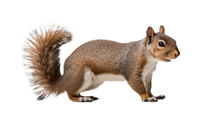 Isolated Cute squirrel standing on two legs and holding something in its paws studio shot