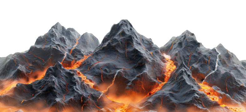 lava mountain isolated on transparent background ,hot lava hills ,generative ai