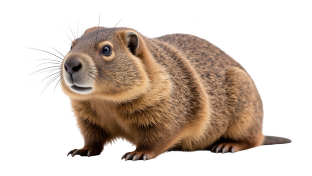 Groundhog isolated on the transparent background closeup  brown fur, whiskers, alert stance, detailed rodent, mammal wildlife concept