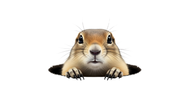Groundhog emerging from burrow in nature of wildlife isolated on transparent background