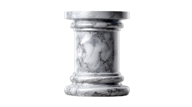 A stately grey and white marble column pedestal offers a classic architectural foundation for displaying valuable sculptures, products, or as a sophisticated decorative accent in luxury