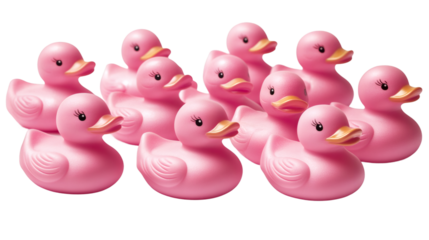 Pink rubber ducks floating together on a transparent background, creating a playful and cheerful scene