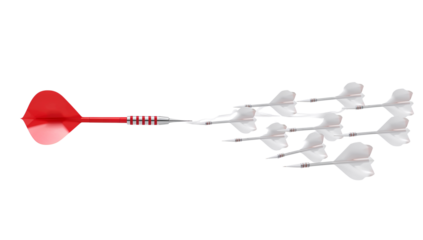 Precision and Focus Red Dart Leading White Darts on Isolated Transparent Background