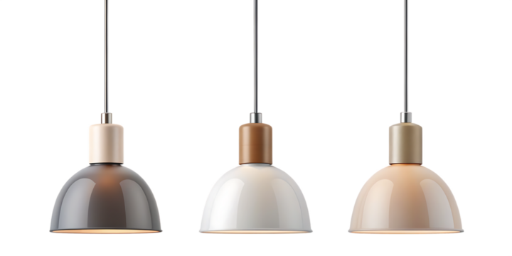 set of minimalist hanging lamps isolated on white background, png, ai generated.