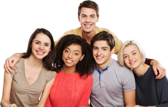 Transparent background group of smiling friends standing together