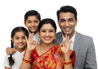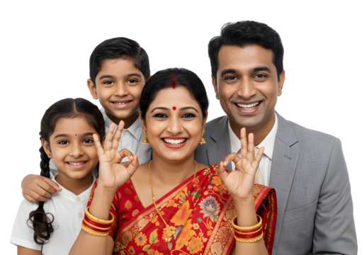 Joyful Indian Family of Four Smiling with the 'OK' Hand Sign Celebrating Together