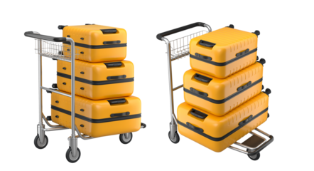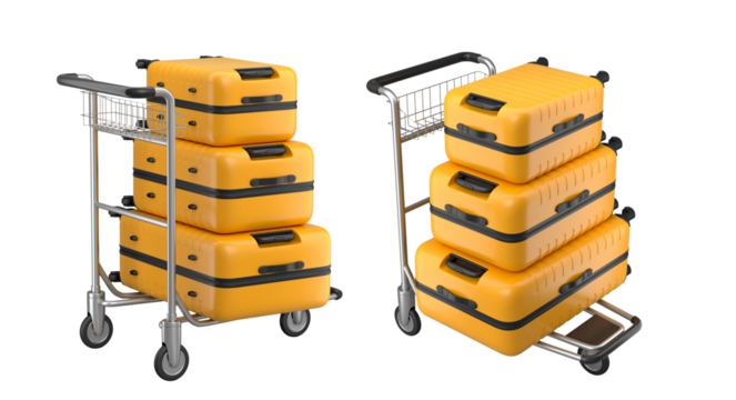 Set of Regular suitcase on hotel trolley cart for carrying baggage on white background