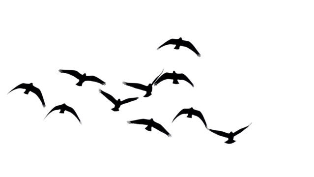 Stylized bird silhouettes soaring on transparent background