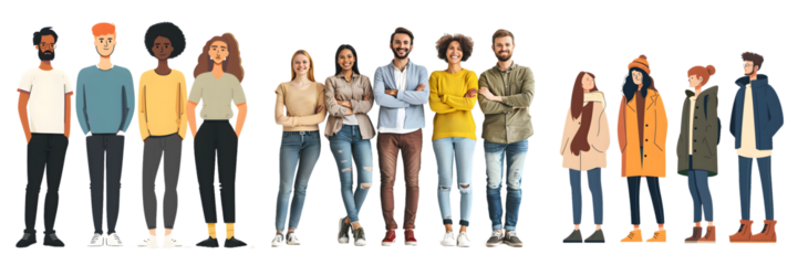A diverse group of individuals standing together in unity . Transparent background.