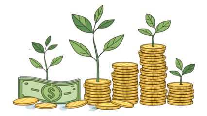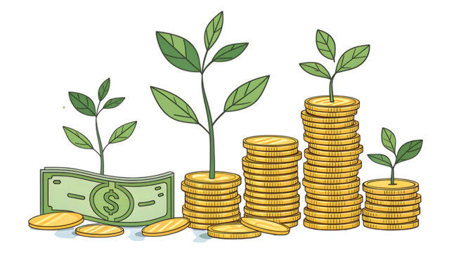 Growth concept trees growing coins transparent background
