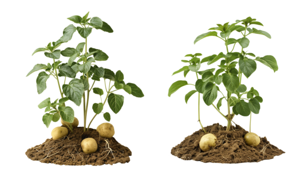 Potato plant with potatoes growing out of the ground isolated on transparent background, cutout png
