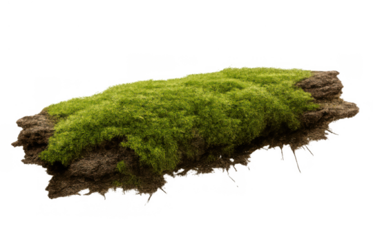 Lush green corn stalks with exposed roots, growing from the dark earth, isolated
