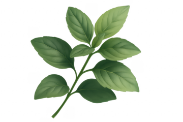 Sprig of fresh green basil leaves growing on transparent background