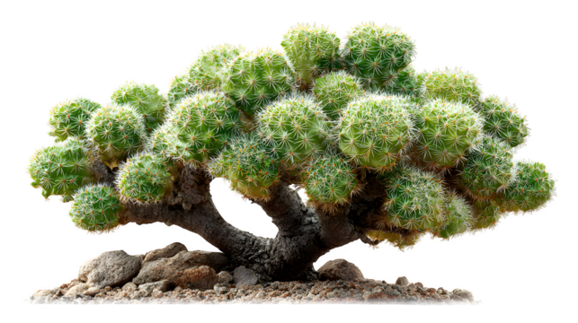 Teal cartoon cactus with black spines on transparent background
