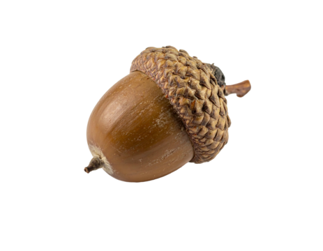 Stylized acorn in flat design with transparent background