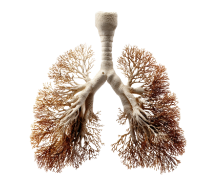 Conceptual representation of human lungs resembling tree branches, cut out transparent