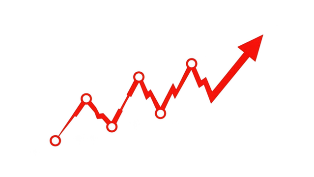 A 3D rendered red bar chart with an upward trending arrow against a black background