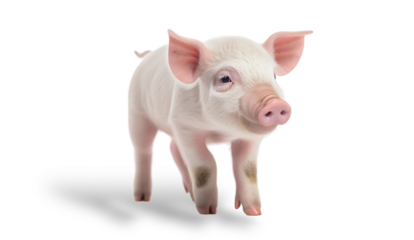front view, close up of a cute pink piglet tilting its head, facing the camera. isolated on transparent background.