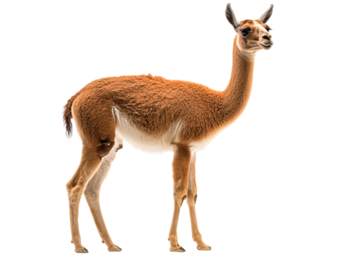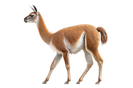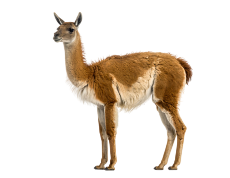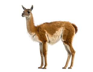 Full Body Portrait of Guanaco Camelid Standing Still, cut out transparent