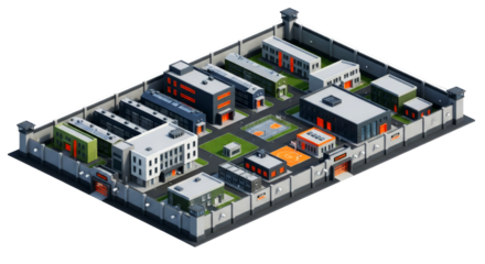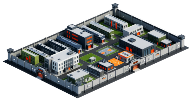 maximum security prison isometric 3d model for game design, isolated on transparent background